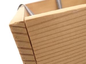 木箱にテープ跡があり、木箱角に隙間があります。