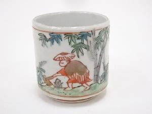 江戸末期 古伊万里 錦筍堀文猪口5客