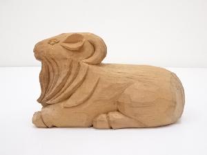 田中主水造 木彫羊置物(共箱)