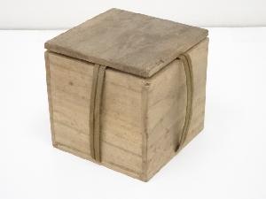 木箱全体に経年による汚れがあり、蓋の桟が片方ありません。