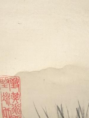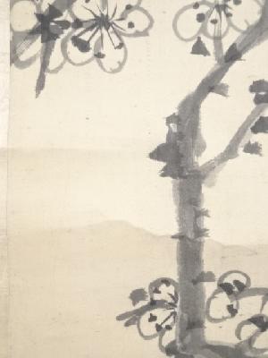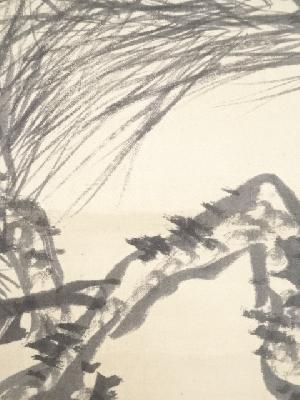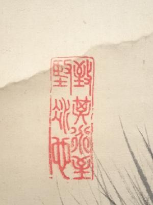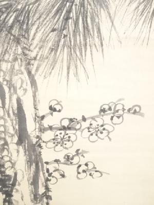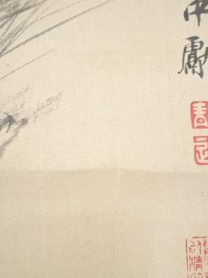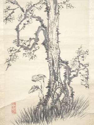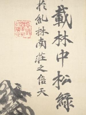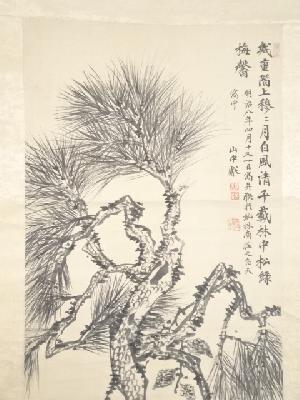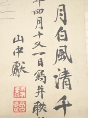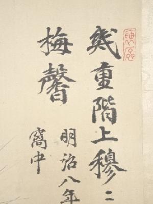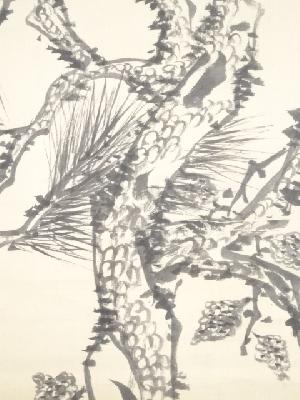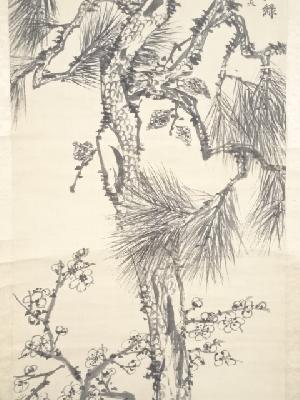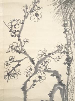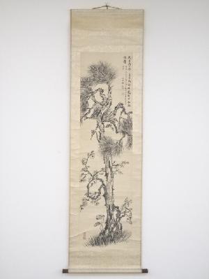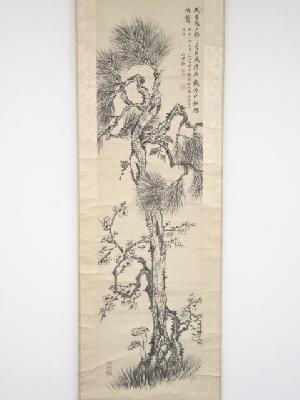 明治8年 山中信天翁筆 松梅図 肉筆絹本掛軸(箱付)
