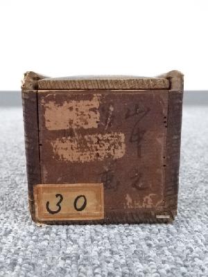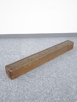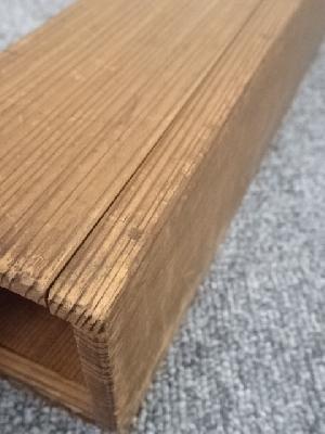 木箱に破損があり、木箱側面にシールが貼られています。