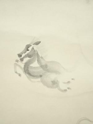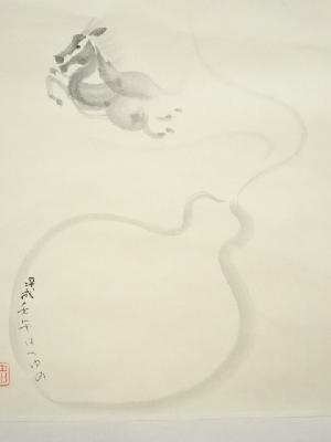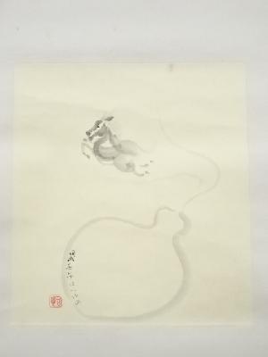 作家物 瓢箪から駒図 肉筆紙本掛軸(共箱)