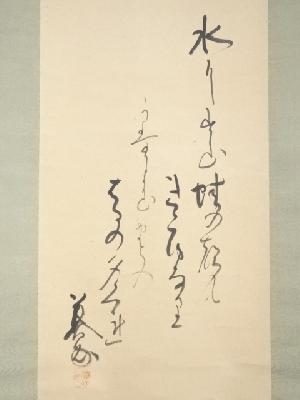 表具裏上部に薄く汚れがあり、ところどころに巻き跡による折れがあります。