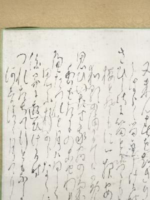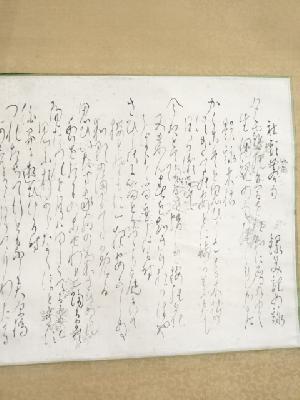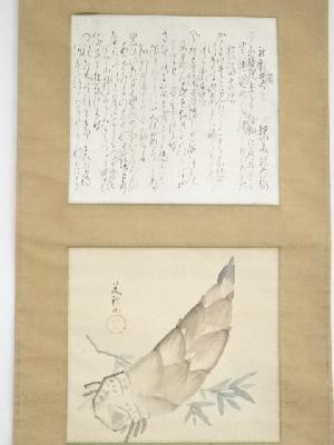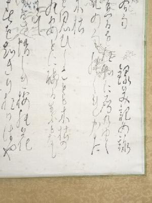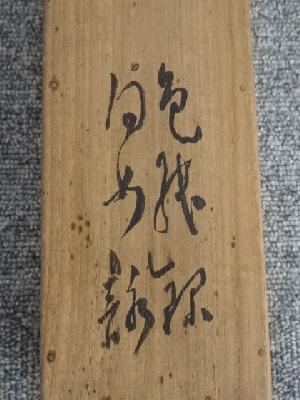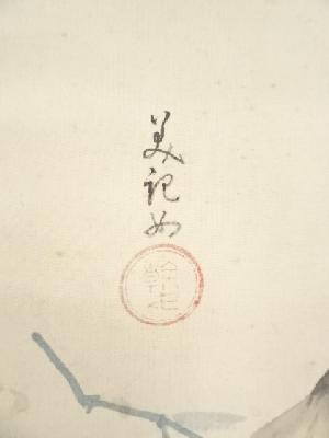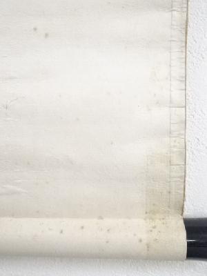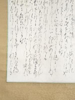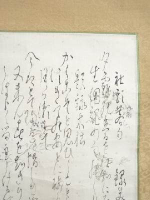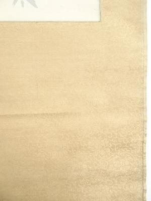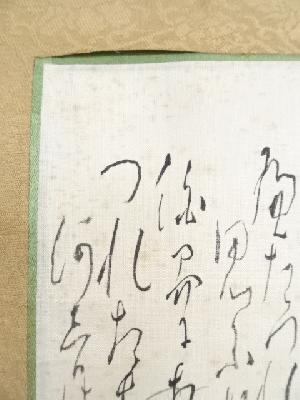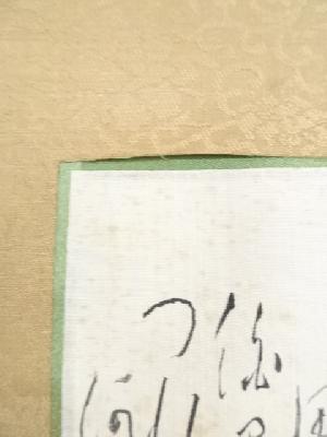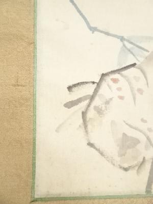 また、本紙に点々とシミがあり、表具と本紙の境目に浮きがあります。