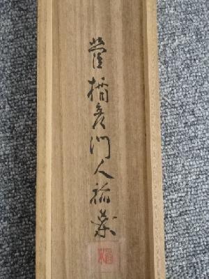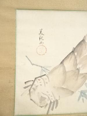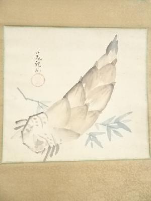 • 菅美紀(菅楯彦の妻)筆 和歌・筍 肉筆絹本掛軸(内田稲葉箱書)(共箱)