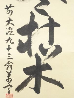前大徳丹羽萬寧 「三冬枯木花」一行書 肉筆紙本掛軸(共箱)