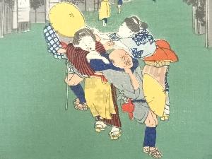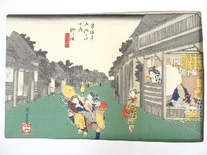 歌川広重 東海道五十三次 御油 旅人留女 手摺浮世絵木版画