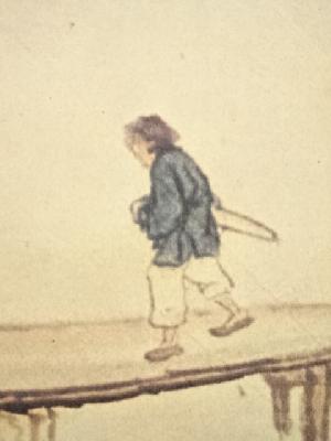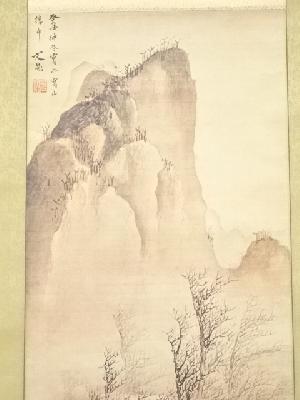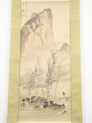 谷文晁 山水図 印刷紙本掛軸(共箱)