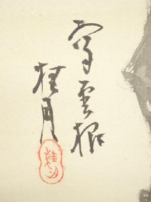 • 桂月・岸浪柳渓・益田楳岳合作 花竹石図 肉筆絹本掛軸(保護箱)