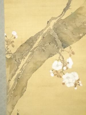 三熊花顛筆 桜図 肉筆絹本掛軸(保護箱)