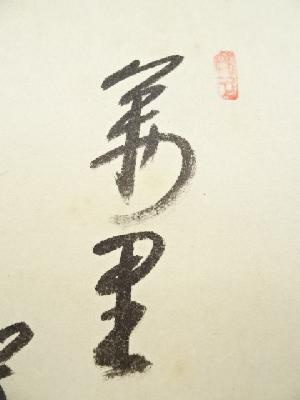 • 前大徳西垣大道筆 「萬里賀太平」画賛 肉筆紙本掛軸(共箱)