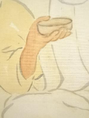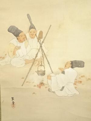 大正期 孤堂筆 煖酒歓楽図 肉筆絹本掛軸(共箱)