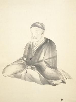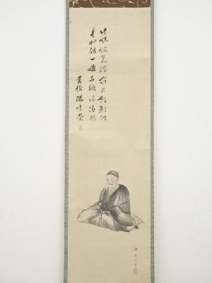 喜田華堂筆 人物図 超光陽宗賛 肉筆紙本掛軸(保護箱)