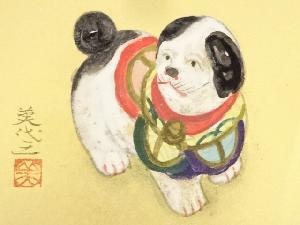 美代之筆 犬図 肉筆色紙