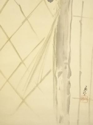 本紙、表具裏に薄くシミがあります。