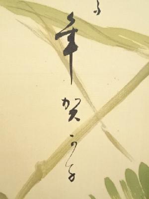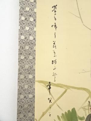 大谷句仏筆 新春 肉筆絹本掛軸(保護箱)