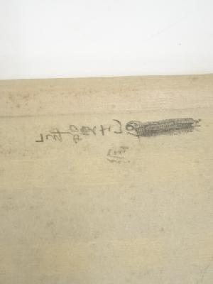 裏面に書き込みがあり、八双端に剥離破れがあります。