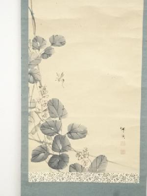 渡辺祥英筆 花に蜂図 肉筆紙本掛軸
