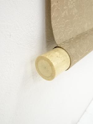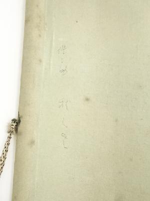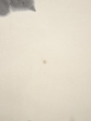 表具表裏、本紙にシミがあり、八双や軸棒部分などに擦れがあります。