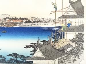 歌川広重 東海道五十三次 吉田 手摺浮世絵木版画 額装