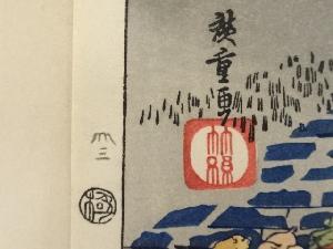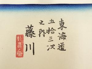 歌川広重 東海道五十三次 藤川 手摺浮世絵木版画 額装