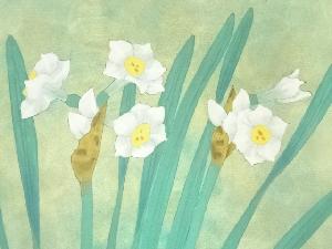 作家物 水仙図 肉筆色紙