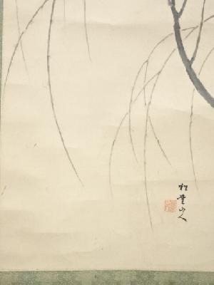 松堂筆 柳に鶯図 肉筆紙本掛軸(保護箱)