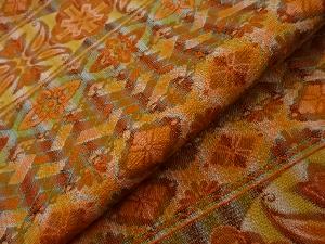リサイクル 横段に花々模様織出し名古屋帯