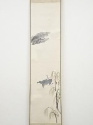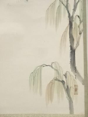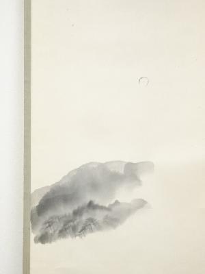 山口蓬春筆 夕月図 肉筆紙本掛軸(共箱)
