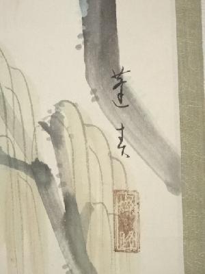本紙に若干のシミがあり、表具裏上部に若干の汚れ、焼けがあります。