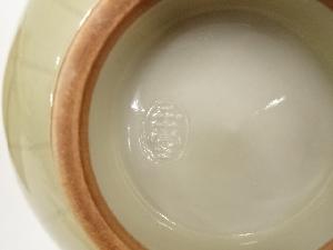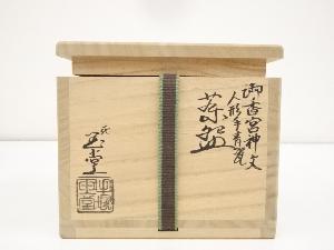• 京焼 二代手塚玉堂造 御香宮神文人形手青磁茶碗(共箱)