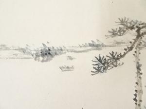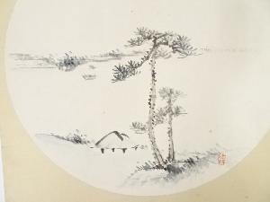 河野珠石筆 山水図 肉筆色紙