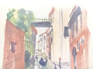 川端弥之助筆 ベニス運河 肉筆色紙