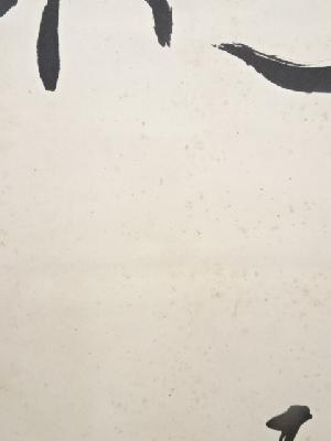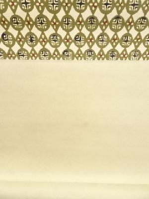 表具表に小さくシミ、本紙、表具裏に点々とシミがあります。