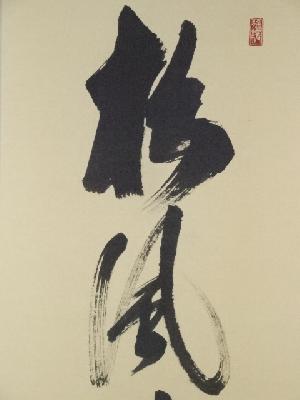 前大徳須賀玄道筆 「松風塵外心」一行書 肉筆紙本掛軸(共箱)
