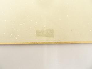 また、裏面の下部にテープ跡があり、上部にはがれがあります。