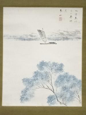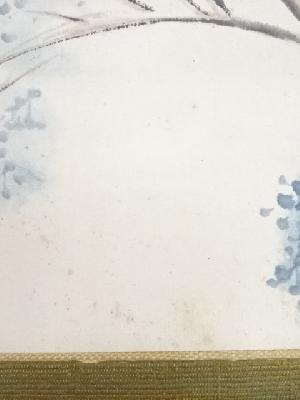 乙亥(1935年) 甲斐虎山筆 山水 肉筆紙本掛軸(保護箱)