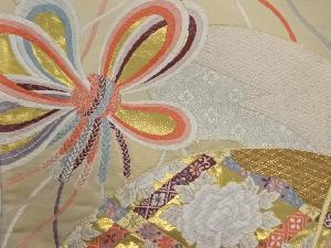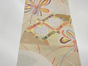 リサイクル 扇に束ね組紐・牡丹模様織出し袋帯