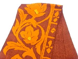 リサイクル 手織り真綿紬草花模様織出し名古屋帯