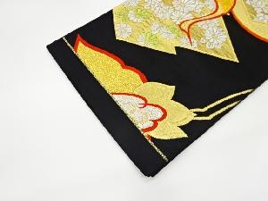 リサイクル 松皮菱に花々・鶴模様織出し袋帯