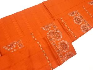 リサイクル 横段に草花模様織出し名古屋帯