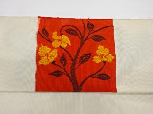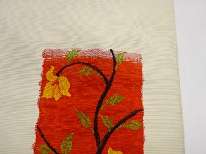 リサイクル 短冊に草花模様織出し紬名古屋帯