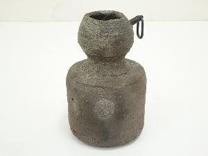 国造焼 三代山本浩彩造 焼締窯変掛花入(共箱)