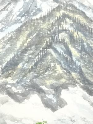 文平筆 夏山 肉筆紙本掛軸(共箱)