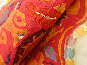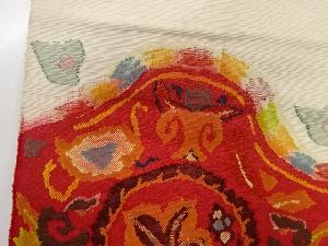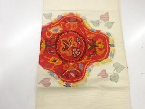 アンティーク 手織り紬花唐草模様織出し名古屋帯