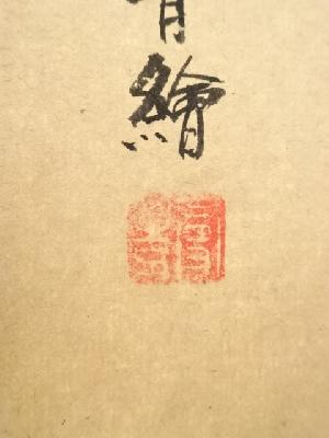 表具表のところどころに小さなシミがあり、表具裏に若干の汚れがあります。