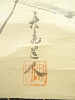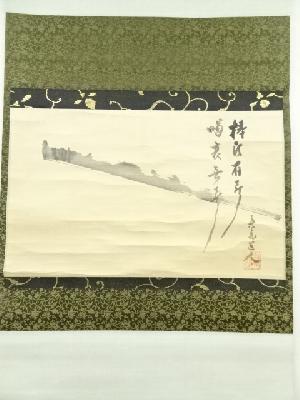 大徳寺 立花大亀筆 画賛横物 肉筆紙本掛軸(共箱)