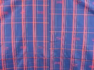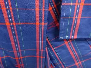 リサイクル 格子に絣柄織り出し手織り紬着物アンサンブル