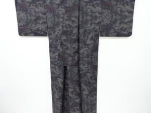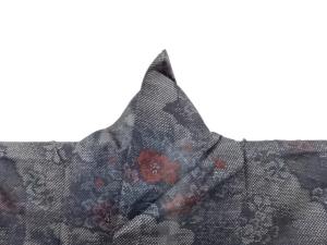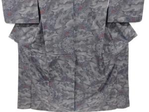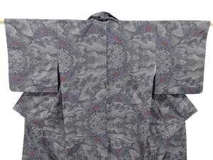 雲に草花模様織り出し本場泥大島紬着物(7マルキ)